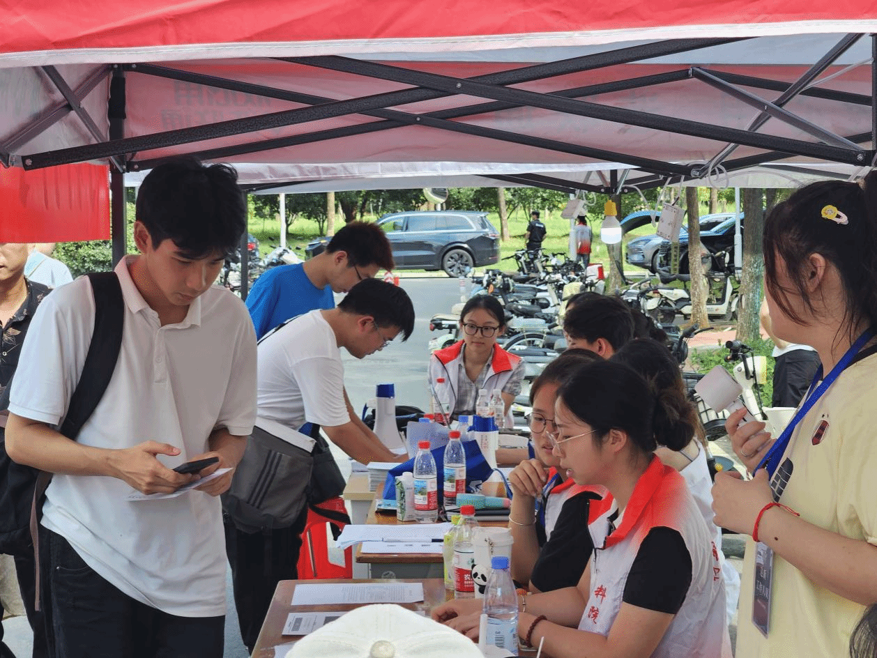 学院组建“党员先锋服务队”,让党旗飘扬在迎新一线,迎新现场,党员志愿者穿梭于人群中,为新生及家长提供校园地图指引、报到流程讲解等精准服务。