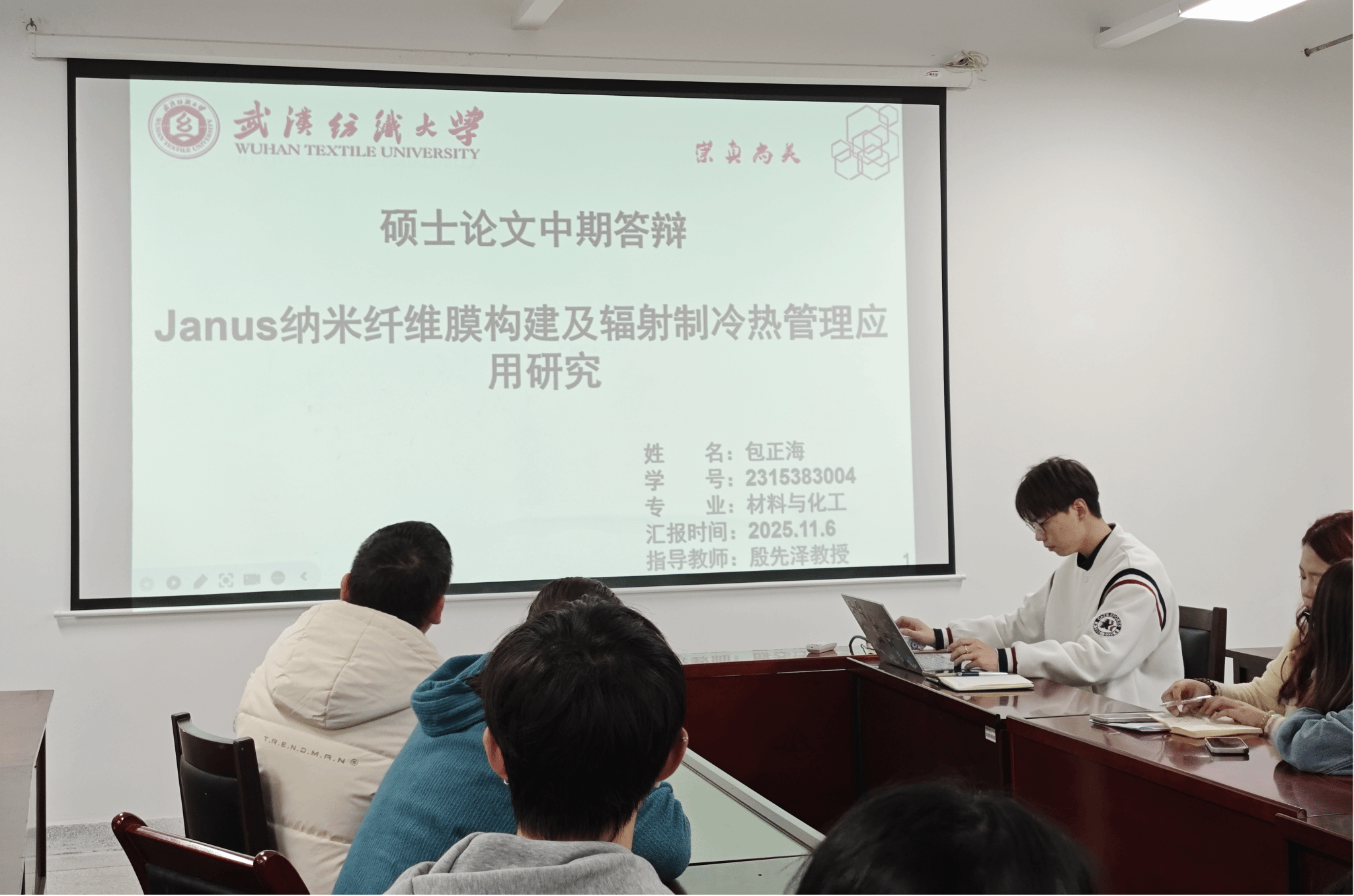 2025年11月6日,必赢bwin网址大全在阳光校区成功举办了2025年第23期研究生学术论坛。本次论坛由研究生院主办、必赢bwin网址大全承办,王小俊、杜杰豪两位教师担任指导评委,学院硕士研究生包正海、贺嘉欣、姚嘉仪三位同学分别围绕辐射制冷织物、PVDF膜亲水化改性、羧基化莱赛尔纤维抗菌功能化三大研究方向进行了精彩的学术汇报,集中展示了学院在功能纤维、膜材料与生物质材料领域的前沿探索与创新成果。