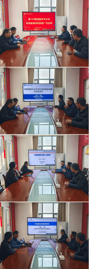 四位专家学者带来了精彩的专题报告:周应山老师就“天然材料在医用领域的应用研讨”进行了深入分析,探讨了天然材料在生物相容性、可降解性等方面的独特优势及其在医疗器械、组织工程等领域的广阔前景。杨红军老师分享了“织物增强多功能人造血管”的研究成果,详细介绍了如何通过织物增强技术提升人造血管的力学性能和生物功能,为心血管疾病治疗提供了新的思路。董齐老师围绕“光聚合组织粘合剂的生物应用”展开阐述,展示了光聚合技术在组织粘合剂开发中的创新应用及其在微创手术和伤口愈合方面的潜力。徐超老师带来了“织物增强电活性神经移植物的构建及性能研究”的报告,探讨了如何利用织物增强和电活性材料构建新型神经移植物,以期在神经损伤修复领域取得突破。本次学术沙龙为学院教师提供了一个高水平的学术交流平台。与会教师围绕生物医用材料的最新研究成果、技术挑战及产业转化等议题展开了热烈讨论,不仅拓宽了学术视野,也为学院在生物医用材料领域的科研合作与创新发展奠定了坚实基础。此次沙龙的成功举办,将进一步推动必赢bwin网址大全在生物医用材料领域的研究深度与广度,助力学院在相关前沿领域取得更多突破性成果。