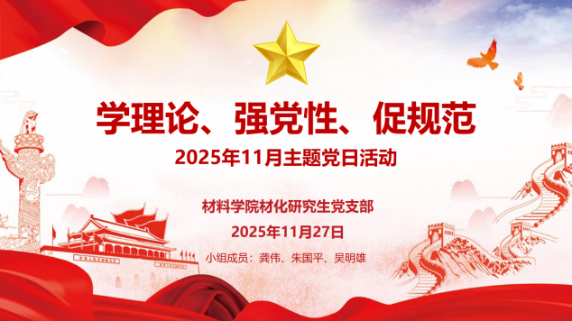 为深入学习贯彻习近平新时代中国特色社会主义思想,强化党员党性修养,推动支部工作规范化建设,11 月 27 日,必赢bwin网址大全材化研究生党支部以 “学理论、强党性、促规范” 为主题,组织开展 2025 年 11 月主题党日活动,支部全体党员及入党积极分子全员参加。活动由支部副书记王鹏主持。
