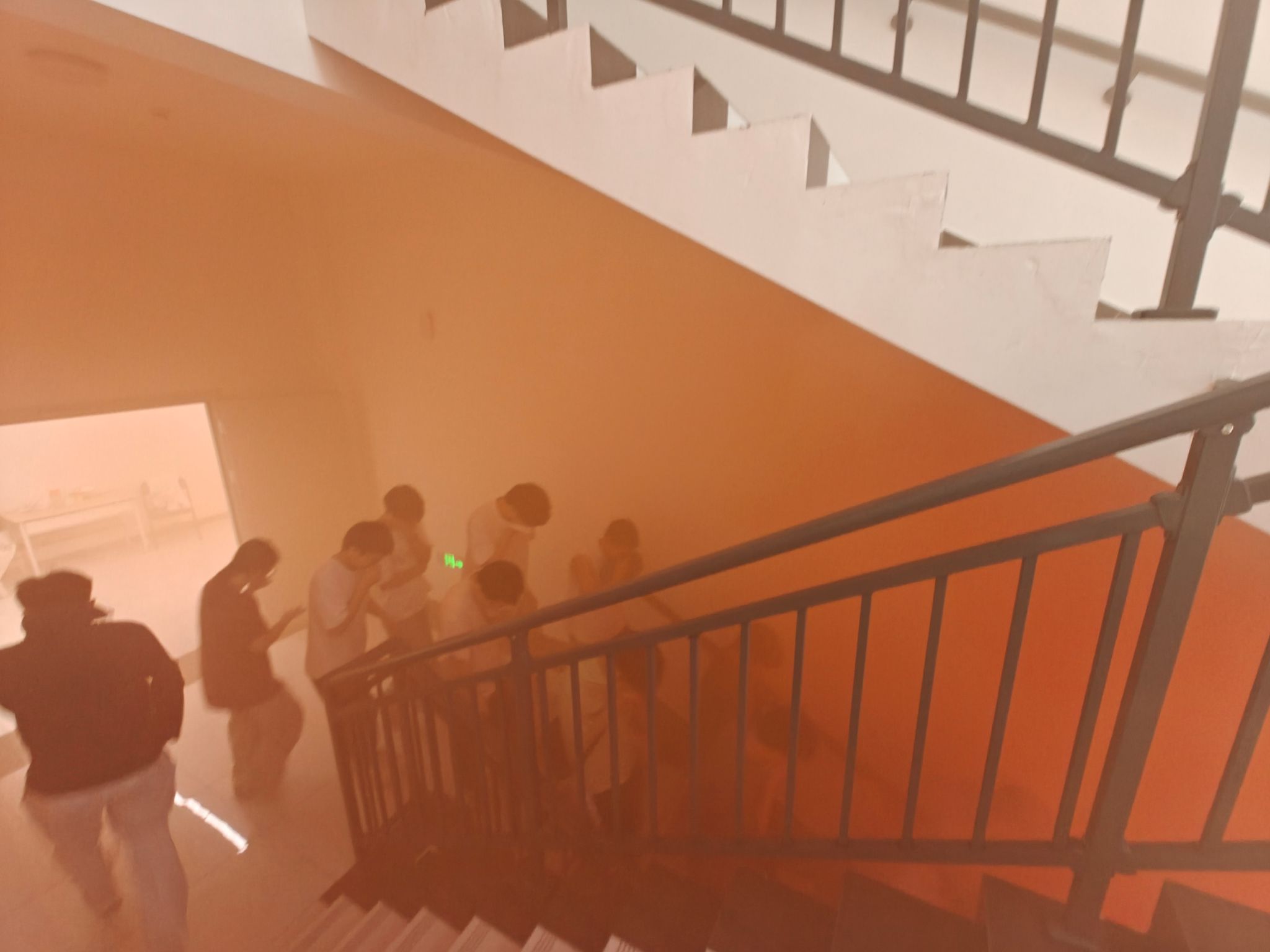 随着模拟烟雾的升起和急促的警报声,紧张的应急疏散演练正式拉开帷幕。在学院辅导员和安保人员的精心组织与引导下,参与演练的研究生同学们迅速进入状态。大家严格按照“捂鼻、弯腰、低姿、靠右”的逃生要领,沿着预定的疏散路线,快速、有序地从教学楼内撤离至指定的室外安全集结区域。整个疏散过程紧张而不慌乱,迅速而有条理,达到了预期的演练效果。通过亲身体验,同学们切实掌握了在紧急情况下如何有效规避风险、迅速安全逃生的实践能力,团队协作和应急反应能力也得到了锻炼。