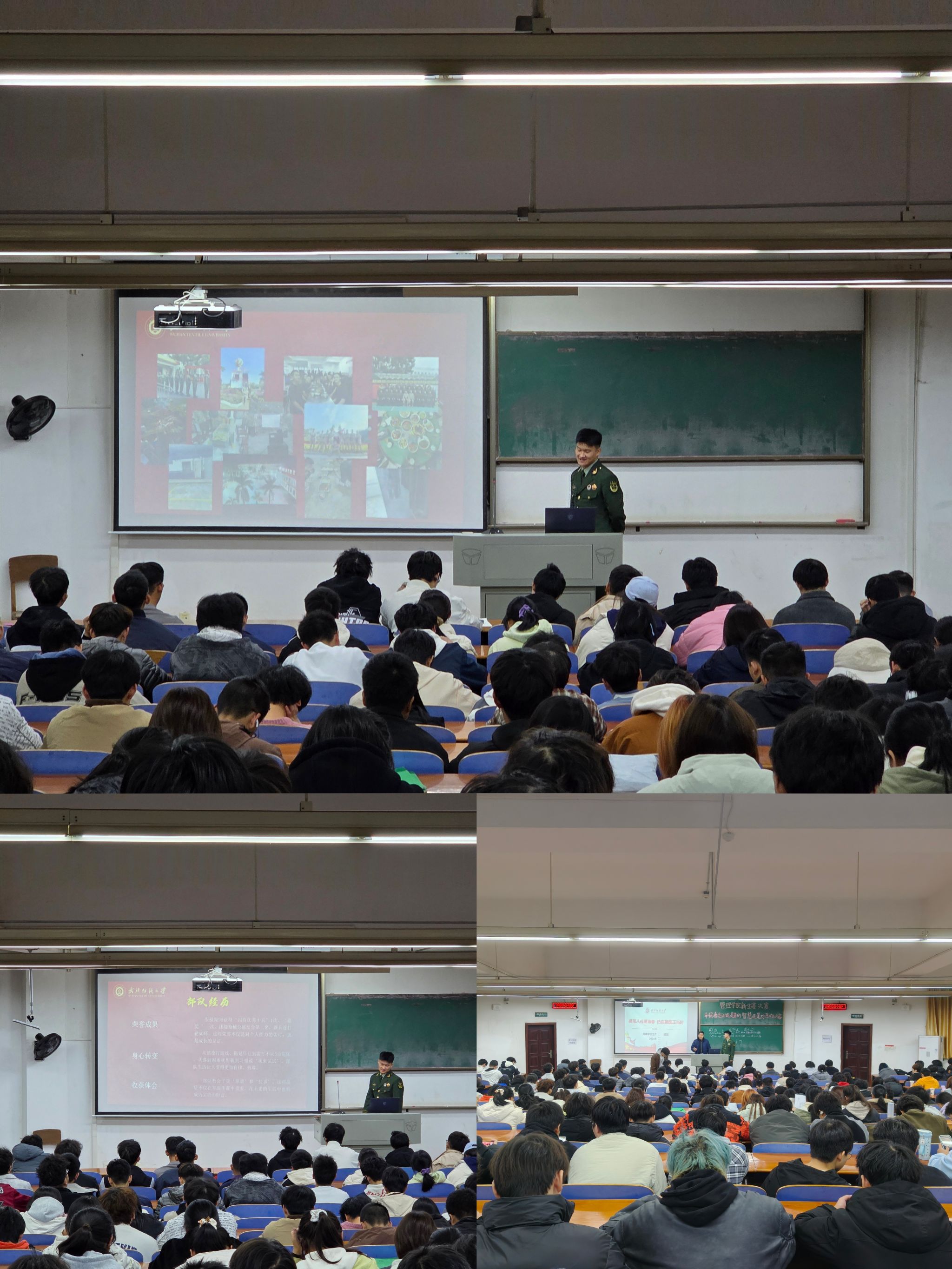 各年级以“携笔从戎砺青春,热血报国正当时”为主题召开了年级大会和班会。会上,各年级班主任、辅导员分别做入伍政策宣讲,详细介绍了2026年征兵报名时间、入伍基本条件等内容,鼓励同学们积极报名,为同学们答疑解惑。同时,对大学生参军的学费补偿、升学优待、就业安置等优待政策进行了重点解读。